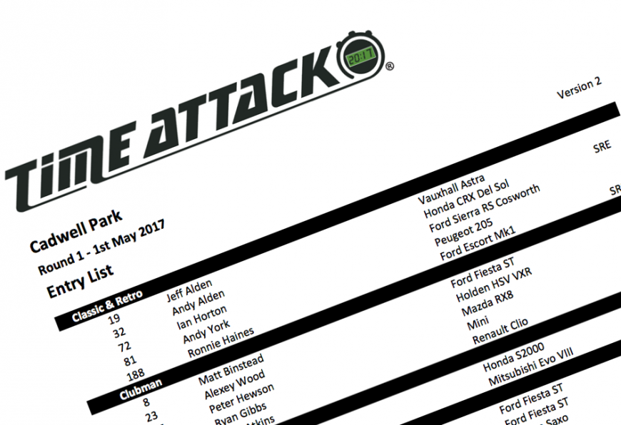 The driver and team entry list for Cadwell Park is below: